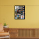 Poster 75th Birthday Black Gold 21 Photo Cheers to Years. Créez un poster d'affichage de mémoire photo de 75e anniversaire en utilisant ce modèle de collage photo facile à télécharger avec 21 photos d'elle ou de lui tout au long des années pour une décoration de fête d'anniversaire amusante et souvenir commémoratif. Le design comporte le titre CHEERS TO 75 YEARS avec des numéros de bulle en feuille d'or et votre texte personnalisé (l'exemple dit HAPPY BANTHDAY NAME) sur la photo centrale dans votre choix de texte de styles et de couleurs de police ainsi que la couleur arrière - plan (montré en noir). OPTIONS : L'échantillon est présenté dans une taille de 18X24" sur papier à valeur (Matte); d'autres tailles d'impression standard et personnalisées, qualité et encadrement du papier, fichier de téléchargement numérique instantané pour l'impression locale ou le transfert de la conception à une planche en mousse, bannière, toile ou autres options de produit sont disponibles sur la page de commande. CONSEIL DE REdimensionnement : Choisissez Taille personnalisée pour les bordures paires en modifiant la hauteur et la largeur proportionnellement APRÈS avoir cliqué sur l'icône DÉVERROUILLER (ressemble à un lien de chaîne). ASSISTANCE : Pour obtenir de l'aide sur la modification ou la personnalisation de la conception, le changement de couleur, le redimensionnement ou le transfert de la conception, contactez le concepteur AVANT DE COMMANDER via l'onglet MESSAGE Conversation Zazzle ou envoyez un courriel à makeitaboutyoustore@gmail.com.