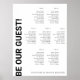 This customizable simple elegant 7 table wedding seating chart template will be a great addition to Wedding party decor. It features Be our guest written in bold black letters against white background. Text is fully editable, to make advanced changes, please select "Click to customize further" option under Personalize this template. Matching Wedding enclosure card, RSVP card and day-off stationery is also available, check out "Black and white Bold letters wedding stationery and decor" collection in my store Wowweds.