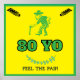 80 Ans Sentez La douleur Vieux Homme accroupi en marchant avec de la canne. En bas se trouve "Sens la douleur"