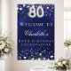 Une affiche de bienvenue pour une fête du 80e anniversaire. Un arrière - plan bleu marine avec d'élégantes étoiles faux argent. La couleur bleue est inégale. Personnalisez et ajoutez un nom et un texte. Lettres blanches.