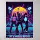 80's retro music poster with Led Zeppelin, Bon Jovi, and Michael Jackson. Step back in time to the era of big hair and even bigger anthems! This stunning retro-futuristic poster celebrates the golden age of music with a dynamic tribute to the legends of 80s rock. Featuring glowing neon, a classic synthwave aesthetic, and the bold declaration "80's MUSIC ROCKS," it's the ultimate piece for nostalgia lovers and music enthusiasts.