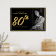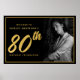 Affiche 80th Birthday Photo Black Faux Gold Leaf Elegant