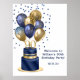 Affiche 90e anniversaire Marine Blue Balloon Cake Bienvenu