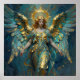 A beautiful angelic poster with a beautiful angel with a turquoise marble background and a gold halo in an impasto style.