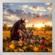 A pretty horse themed poster. A beautiful scene of a mama horse and her baby foal sitting on the Autumn leaves at dusk.