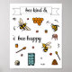 Abeille gentille et heureuse jolies abeilles mot art Poster