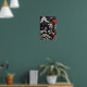 A imagem é um close-up de uma peça de arte em madeira. Ela é esculpida com um belo padrão floral. A obra de arte é em preto, branco e vermelho. O fundo da peça é preto, com desenhos em branco e vermelho. A peça lembra uma floresta tropical, com plantas e flores. Os detalhes intrincados da escultura chamam a atenção. This abstract floral print is a beautiful and unique piece of art that would look great in any home. The intricate details of the flowers and leaves are sure to catch the eye, and the bold colors will add a touch of vibrancy to your space. It is a great conversation starter and sure to become a cherished piece of art.