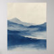 A calm abstract landscape in soft indigo and warm off-white tones. Minimal layered forms create a sense of openness and balance, inspired by natural horizons and contemporary Japanese aesthetics. Designed to bring stillness and quiet depth to modern interiors