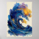 Dynamic abstract artwork of a surfer riding a powerful wave formed by flowing liquid color. Rich blues and glowing gold tones create movement and energy, capturing the spirit of the ocean in a modern artistic style. Ideal for surf lovers, beach homes and contemporary interiors.
