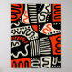 Un design abstrait original et audacieux dessiné à la main en noir, rouge orange et crème.