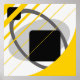 Lignes jaunes, angle incurvé, ovales gris, carrés noirs, arrière - plan blanc cassé. #abstrait