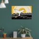 Affiche Abstrait Sunsrise Baleine Fin Mer Jaune & Noir