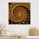 Ce produit présente un art fractal en spirale géométrique abstrait dans les tons noir et or.