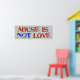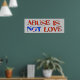 Des mots crackés et inclinés épellent "l'abus n'est pas l'amour" avec un bandage sur la lettre "o" dans Not. Rappelez à ceux qui trouvent impossible de s'en aller parce qu'ils croient que leur agresseur les aime.