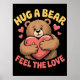 Cette illustration qui fait chaud au coeur présente un ours amical serrant un grand coeur rouge. Le texte "Accrochez un ours, Ressentez l'Amour" entoure l'ours, créant un thème chaleureux et affectueux. Le design dynamique capte un sentiment d'amour et de confort, parfait pour transmettre des sentiments de soin et de tendresse.