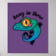 Gecko de dessin animé coloré léchant son globe oculaire avec la phrase Hang In There. Mots clés : lézard, oeil, animal, mignon, dessin animé, gecko, reptile, langue, inspiration, inspiration, motivation, motivation, aide, conseils, pendre