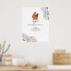 Baby shower poule et bébé poussin accueil avec des motifs de saumons aux coins.