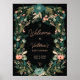 Accueillez vos invités avec style grâce à ce panneau élégant pour la baby shower, qui présente un design floral fantaisiste. Le fond vert foncé, associé à la verdure luxuriante et aux fleurs roses douces, crée une atmosphère charmante pour un événement inspiré de la nature ou sur le thème bohème. Ce panneau de bienvenue illustré à la main ajoute une touche personnelle et magnifique à votre célébration, créant l'ambiance parfaite pour une baby shower mémorable.