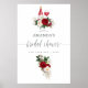 Affiche de bienvenue personnalisable pour une fête prénuptiale de dégustation de vin sur le thème bohème floral aquarelle burgundy - marsala et eucalyptus