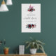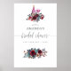 Affiche de bienvenue de fête prénuptiale bohème rouge bordeaux et bleu marine (marsala et indigo) tendance, personnalisable selon les spécificités de votre événement.