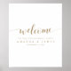 Nous avons donné à cette affiche de bienvenue simple et animée de la fête de fiançailles un brin de panache avec "Welcome" dans une police moderne fluide. Nous aimons les fleurs stylisées et allongées aux deux extrémités du mot. Ceci et l'autre texte est un ton or élégant appelé California Gold. Utilisez les outils d'édition intuitifs pour le personnaliser et le rendre unique à vous !