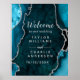 Cet élégant et glamour panneau d'accueil mariage est orné d'un arrière - plan en marbre turquoise bleu agate avec des accents de parties scintillant faux argent. Le texte combine écriture manuscrite et polices sans serif modernes pour un look élégant et sophistiqué. Il conviendra parfaitement aux mariages d'automne et d'hiver.