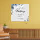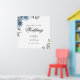 Elégante aquarelle bleu poussiéreux botanique, affiche de bienvenue mariage. Style design typographique chic moderne.
