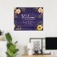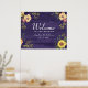 Rustique, élégant, moderne, boho, bois violet poster de bienvenue mariage avec fleurs d'aquarelle et verdure.
