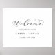 Cette affiche élégante de bienvenue mariage de script est parfaite pour un mariage simple. Le design minimaliste noir et blanc présente une typographie romantique avec style glamour moderne. Personnalisable dans n'importe quelle couleur. Gardez le design minimal et élégant, tel quel, ou personnalisez-le en ajoutant vos propres graphiques et artwork. Customisez l'affiche avec le nom de la mariée et du marié, et la date du mariage.