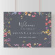 Cette affiche de bienvenue aux fleurs sauvages et colorées est parfaite pour un mariage rustique. Le design présente des fleurs sauvages jaunes, violettes et blanches avec du feuillage dans un arrière - plan rose et vert aquarelle. Faites de cette affiche votre propre en ajoutant le nom de la mariée et du marié, ainsi que la date du mariage. REMARQUE : Cet article est une affiche seulement : un cadre ou un support en mousse est nécessaire pour l'affichage.