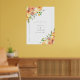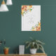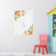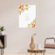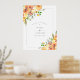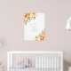 Panneau de bienvenue mariage de automne, avec une bordure de fleurs d'aquarelle orange. Le texte personnalisé est en police grise serif.