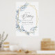 Affiche Accueil Mariage Eucalyptus géométrique bleu et or
