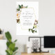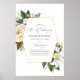 Poster d'accueil fleuri mariage avec des pivoines roses, des herbes sauvages, du coton et des lys au cadre géométrique doré personnalisable selon vos spécificités.