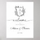 Elégante calligraphie noir et blanc monogramme floral crête mariage classique accueil poster.