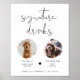 Cette enseigne de boisson signature comporte deux emplacements pour photos, une police manuscrite audacieuse et un design moderne minimaliste. Changez facilement la police et la couleur de fond pour correspondre à votre événement. Cette enseigne est parfaite pour ajouter soit une photo des mariés, des enfants ou de vos animaux de compagnie préférés.
