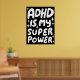 Affiche ADHD est ma Superpower Fun Bubble Lettres B&W