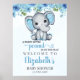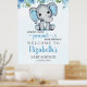 Affiche Adorable Watercolor Blue Elephant Baby shower boy