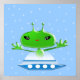 Affiche Adorables Aliens Verts de l'Espace avec un Vaissea
