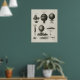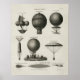 L'illustration technique montre les premières conceptions de ballon : "La machine aéronautique de Lana", "Le ballon de Montgolfiers", "Le ballon de Blanchard", "La Garnerin ascendant [et] descendant" dans son parachute, "Le ballon de Charles & Roberts" gonflé, "La forme des ailes employées par Lunardi" et "La forme des ailes employées par Blanchard". Aéronautique, Affiche française