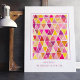Une affirmation positive heureuse et colorée qui est personnalisée avec un nom (qui peut être supprimé si non nécessaire) et une citation qui se lit : Je suis unique et spécial. Le design en diamant aquarelle est peint à la main en rouges, oranges et ors. Cela ferait un excellent ajout à une chambre ou une salle de jeux.