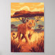 Affiche African Savannah Lion - Wildlife Sunset Art