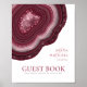 Tous les designs mariages ne sont pas égaux. L'agencement asymétrique des pièces de cet ensemble mariage frappant prouve que ce n'est pas une mauvaise chose ! Des bandes de couleur ondulées, allant du bordeaux au rose doux et gris, avec un centre de cristal scintillant, forment un accent géode/agate sur la plupart des pièces de l'ensemble. Le signe mariage "Livre d'Invité" qui apparaît ici présente les éléments ci-dessus ainsi qu'un modèle pour ajouter un message personnel, vos noms et la date du mariage. Recherchez ID647 pour voir toutes les pièces de coordination de cet ensemble.