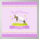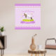 Agneau sautant mignon nom personnalisé pourpre bébé poster. Agneau de printemps mignon peint à l'aquarelle d'un bébé mouton sautant dans une prairie fleurie avec des papillons violets et jaunes. Personnalisez avec votre propre nom. Agneau mignon sur un arrière - plan de ciel violet. Autres articles d'art de mouton mignon assortis disponibles. © Uniquement peint en aquarelle et conçu par Sarah Trett pour www.mylittleeden.com