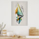 Cette pièce d'art présente un design unique qui combine des formes géométriques pointues et la fluidité de la peinture aquarelle. Les tons vert, orange, bleu et noir apportent une touche de vitalité à l'ensemble, parfait pour un intérieur moderne. Le résultat est un visuel dynamique et captivant qui attirera l'attention de tous.