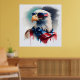 Aigle patriotique aquarelle chauve avec lunettes bleues et bandana aux couleurs du drapeau américain