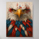 Gros gros plan d'un aigle chauve avec des plumes rouges, blanches et bleues vibrantes. Un symbole patriotique audacieux.