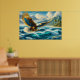 Un tableau d'un aigle qui s'envole gracieusement au-dessus de la vaste étendue de l'océan, saisissant un moment de puissante beauté naturelle.