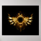 Ailes mécaniques brillantes, avec des engrenages et bannière ronde en laiton. Steampunk