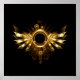 Ailes mécaniques brillantes, avec des engrenages et bannière ronde en laiton. Steampunk