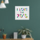 Pour tous ceux qui aiment les années 1970, c'est une grande affiche à mettre sur un mur. Les lettres arc-en-ciel qui disent "J'aime les années 70" feront connaître vos sentiments aux gens pour cette grande décennie.
